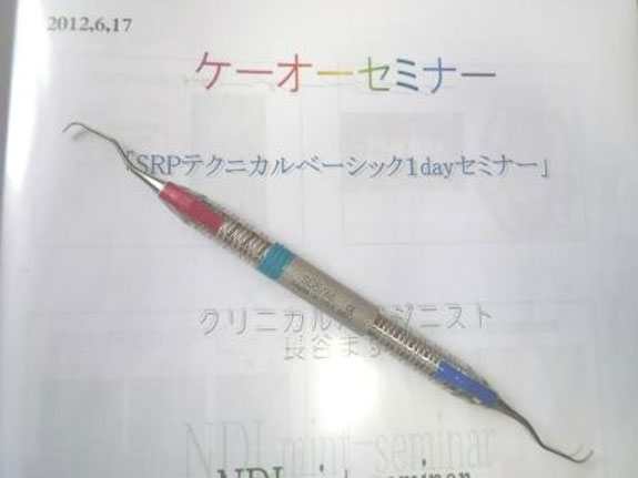 実習は「ダルスケーラー」といってメーカーがわざと刃先が研げていないスケーラーを作り教育用として開発したものを使用しました。自分でシャープニングして切れ味抜群のスケーラーになるまで親切に丁寧に指導していただきました。